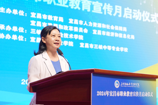 为广泛宣传宜昌现代职业教育体系建设改革成效,展示职业教育服务区域经济社会发展成果,5月16日上午,2024年宜昌市职业教育宣传月启动仪式在职教园学术报告厅举行。宜昌市人民政府副市长李军出席并讲话,宣布职教宣传月启动,市人民政府副秘书长马国卫出席,市教育局党组书记、局长邓玉华主持;市发改委、市人社局、市经信局负责同志,宜昌海事局局长李富新,市教育局党组成员、副局长石希峰,湖北三峡旅游集团党委副书记、总经理章乐等校企合作企业代表,长江游轮行业产教融合共同体成员单位代表,学校党委书记、校长梅继开,党委副书记、副校长朱昌林等校领导出席。各县市区教育局负责人,全市职业院校负责人和师生代表700余人参加。